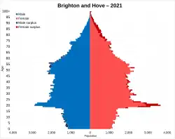 - ^ a b UK Census (2021). "2021 Census Area Profile – Brighton and Hove Local Authority (E06000043)". Nomis. Office for National Statistics. Retrieved 5 January 2024.