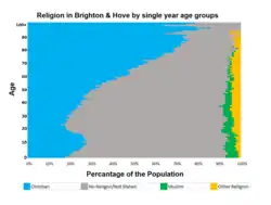 - ^ a b UK Census (2011). "Local Area Report – Brighton and Hove Local Authority (1946157280)". Nomis. Office for National Statistics. Retrieved 14 March 2018.