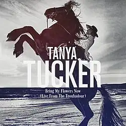 "Bring My Flowers Now" is a song by American country music singer Tanya Tucker. The song was written by Tucker with Brandi Carlile, Tim Hanseroth and Phil Hanseroth. It was released on August 16, 2019, as the fourth single from Tucker's twenty-fifth studio album While I'm Livin'. After 14 nominations throughout her career, the song earned Tucker her first Grammy Award. "Bring My Flowers Now" won Best Country Song in addition to being nominated for Best Country Solo Performance and the all-genre Grammy Award for Song of the Year. Rolling Stone placed the song at number 3 on their Best Country and Americana Songs of 2019 list, while Billboard ranked the song at number 27 on their list of the 35 Best Country Songs of the 2010s. The song peaked at number 47 on the Billboard Hot Country Songs chart.