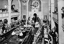 The Synagogue remained largely unaltered over the years. Prior to the centenary celebrations of the Brisbane Jewish community in 1965, considerable renovations were carried out, including the installation of additional stained glass windows. Many of these were donated by congregation members whose families were murdered in the Holocaust (World War II). The words "The Brisbane Synagogue" and the congregation's spiritual name "Kehilla Kedosha Sha'ari Emuna" (The Holy Congregation of the Gates of Faith) were added over the arched entry during 1967–1968.[1]
