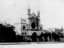 The Jewish families who settled in Queensland from the time of Separation formed the nucleus of the Brisbane Hebrew Congregation founded in Brisbane in 1865. As an interim measure the congregation worshipped in a number of venues in Queen Street, Edward Street, George Street, and Albert Street. For a long time the stables building in the grounds of Samuel Davis's home at North Quay (later known as Aubigny),[2] was incorrectly believed to have been the site of the first synagogue.[3] Meanwhile they were raising money through various land speculations to purchase a site and build a Synagogue.[4] The present site was purchased by R. B. Lewin and sold to the congregation for £200. In 1885 designs for a Synagogue were sought from architects and plans submitted by Edward Wells Russell were accepted. Russell however decided not to undertake the commission, but instead transferred his ownership of the design to his brother-in-law, Arthur Morry, who worked in the Queensland Colonial Architect's office.[5] The foundation stone was laid on 7 July 1885 and a bottle containing coins, newspapers and documents was embedded beneath it.[6] The foundation stone is no longer visible following the raising of the level of Margaret Street, and it is believed that the courtyard of the Synagogue was raised at the same time. This is supported by the fact that ventilated arches for the basement are now located well below ground level.[1]
