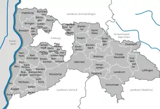 Breisgau-Hochschwarzwald (French: Arrondissement de Brisgau-Haute-Forêt-Noire) is a Landkreis (district) in the southwest of Baden-Württemberg, Germany. Fifty towns and municipalities with 133 settlements lie within the district. The district itself belongs to the region of Freiburg with the region of Southern Upper Rhine.