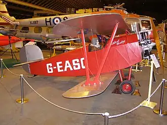 The Bristol Babe[1][2] was the creation of Frank Barnwell, a flying enthusiast as well as Bristol's chief designer. It was aimed at the private owner flyer and was a small single-engined single-seat biplane with unswept staggered single-bay wings of unequal span. Full-span ailerons were fitted on the top wing only. The fuselage was plywood-skinned, with fabric covering it for protection.[3] The cockpit was below the upper wing trailing edge with rounded decking aft to the tail. The fin and rudder were generous and rounded, the undercarriage a conventional single-axle plus tailskid arrangement.