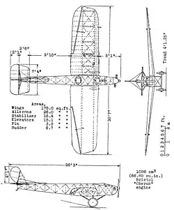 - Powerplant: 1 × Bristol Cherub I 2-cylinder air-cooled horizontally-opposed piston engine, 32 hp (24 kW)