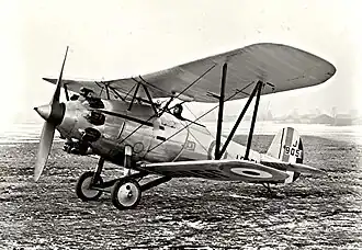 The prototype first flew on 28 April 1928, powered by a Bristol Jupiter engine since a flight-ready Mercury was not yet available, and the aircraft was not delivered to Martlesham Heath for evaluation until March 1929.[2] The Bullpup prototype was subsequently fitted with a Jupiter F type head with twin compensator rods for the penthouse heads. Trials with this engine were carried out at Martlesham in 1929.[3]