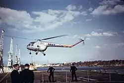 During the flight test programme, Bristol's key development pilots for the Type 171 included Charles "Sox" Hosegood and Col. Robert "Bob" Smith. In 1951, a Bristol-owned Sycamore Mk.2 was used during a series of deck landing trials performed on board the Royal Navy aircraft carrier HMS Triumph.[4] An improved model of the helicopter, designated as the Sycamore Mk.3, was rapidly developed; it featured an increased capacity for five occupants, a wider fuselage and a shortened nose.[2] A total of 23 Sycamore Mk.3s were produced, 15 of these were principally used for joint evaluation purposes by the Royal Air Force (RAF), Army Air Corps (AAC), and British European Airways (BEA).[1][2]