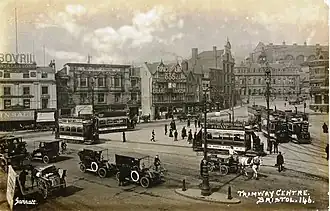 The first trams in Bristol (horse-drawn, with a maximum speed of 6 miles per hour) were introduced in 1875.[1] Electric trams were introduced in 1895, the first city to do so in the United Kingdom.[2] At the system's peak there were 17 routes and 237 tramcars in use.