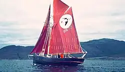 In the 1920s and 30s she was adapted for use as a power whelk trawler, and her interior later changed for use as a charter vessel.[10] She capsized and sank in 1968, after which she was sold, and then restored in Bristol.[11] From 1974 to 1997 [12] she operated as a charter yacht on the west coast of Scotland, after which she was taken to the Hamble, where she continued to offer sailing holidays.[13] In 1995 she was renamed Spirit of Britannia due to registry issues while chartering in the canaries. She was acquired by the Trinity Sailing Trust of Brixham in 2007, refitted in 2008, and in 2011 laid up due to the scarcity of charter work, during which time she was allowed to fall into substantial disrepair.[14] Since 2013 she has been undergoing restoration by the Britannia Sailing Trust in Winkleigh, mid-Devon.[15][16] She was scheduled to be relaunched in 2022, but the work was delayed. She was returned to the water on the 24th of September, 2023, with restoration work continuing.[17] When restoration is complete she is to be based in Cornwall, offering sailing experiences to the disadvantaged and campaigning for cleaner seas.