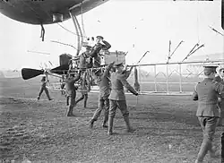 It was used for the first experiments in mooring airships at a mast at Farnborough,[11] and was also used for experiments with aerial photography; during a royal inspection of Farnborough in 1913 a photograph was taken of the royal party from the air, the plate parachuted to the ground and developed and printed in a mobile darkroom.[12]