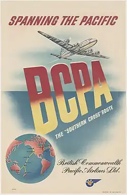 British Commonwealth Pacific Airlines or BCPA, was an airline registered in New South Wales, Australia in June 1946 with headquarters in Sydney. It was formed by the governments of Australia (50%), New Zealand (30%) and the United Kingdom (20%) to pursue trans-Pacific flights. BCPA was later taken over by Qantas.