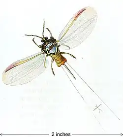 It was a masterpiece of the engraver's and colourist's art, described by Pierre André Latreille (1762–1833) (but wrongly attributed to the eminent French naturalist Georges Cuvier) as the "paragon of perfection". Close examination of a proof set of plates (see below) reveals an obsessive attention to detail. The shading of the foliage is typically achieved by multiple, finely engraved lines spaced at intervals of five or more to the millimetre. The fronds (olfactory receptors) of many moth antennae are individually coloured – as in plate 674 (left). Several beetles and flies have body and limb highlights picked out in minute dots and lines of powdered gold. Thoracic and abdominal hairs are mostly painted individually. Where transparent wings are shown extended the colouring involved the precise application of multiple colour washes overlaid by a satin finish, gum arabic glaze to reproduce the visual effect of iridescence.