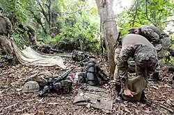 In addition, Brunei serves as one of the British Army's major training areas, specialising in jungle warfare, with the Jungle Warfare Training School (also known as Training Team Brunei or Jungle Warfare Division (JWD)) running the Jungle Warfare Advisor's Course.[11] The three locations that make up Brunei Garrison are Sittang Camp, which is located in the middle of the nation just outside of Tutong, Medicina Lines, which is home to the Jungle Warfare Division and 230 Sqn RAF. The Garrison Headquarters and the resident Gurkha Battalion are housed in Tuker Lines, which is also home to the Garrison Support Services.[12]
