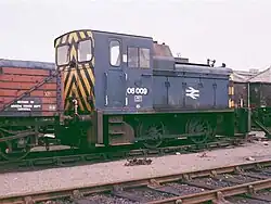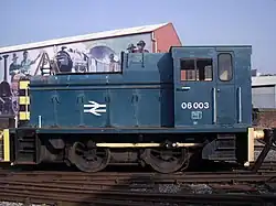 A single locomotive survives, number 06003 (formerly D2420). It was the second last locomotive of the class in service when it was withdrawn in February 1981. It was transferred to the departmental fleet following withdrawal and renumbered 97804, and used at the Reading Signal Works where it replaced 97020.[2] After being withdrawn again in 1984, it was sold to Booth's scrapyard in Rotherham (date unknown) before being saved for preservation by the local South Yorkshire Railway based at Meadowhall in Sheffield. Later owned by HNRC and visited several locations before being stored at the Museum of Science and Industry, Liverpool Road, Manchester, and in 2013 was moved into the Heritage Shunters Trust collection at Peak Rail, Rowsley.