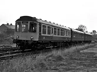 The Class 110 diesel multiple units were built by the Birmingham Railway Carriage and Wagon Company in conjunction with the Drewry Car Co. to operate services on the former Lancashire and Yorkshire main line. They originally entered service exclusively in this region, which earned them the name of the 'Calder Valley' sets. They were an updated version of the Class 104, with more powerful engines, a revised cab design and raised bodyside window frames.