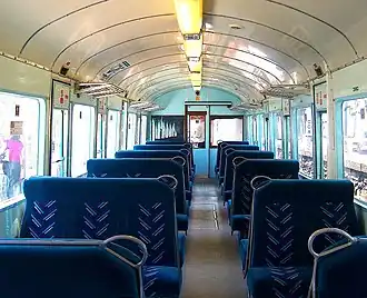 The British Rail Class 121 is a single-car double-ended diesel multiple unit. 16 driving motor vehicles were built from 1960, numbered 55020–55035. These were supplemented by ten single-ended trailer vehicles, numbered 56280–56289 (later renumbered 54280–54289). They have a top speed of 70 mph (113 km/h), with slam-doors, and vacuum brakes. The driving motor vehicles were nicknamed "Bubble Cars" by some enthusiasts (a nickname endorsed and made official by final passenger service operator Chiltern Railways).[12]