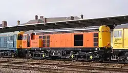 | 20/9 | Modified from Class 20/0 after withdrawal and sold to Hunslet-Barclay for contract freight use and remote-control trialling. Few technical differences from standard locos. Subsequently, sold to DRS, and latterly to HNRC (of which 20 903 & 906 remain; 20 902 has been scrapped). In January 2024, Balfour Beatty purchased 20 901 and 20 905 from HNRC for use within Drain Train operations.[14] |