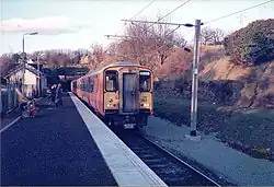 The British Rail Class 318 is an electric multiple unit (EMU) passenger train which operates in west central Scotland. The units were introduced on 29 September 1986 as part of the electrification of the Ayrshire Coast Line between Glasgow Central and Ayr/Ardrossan with alternating current (AC) overhead lines. Their use was extended to Largs in January 1987. They were also used on the Inverclyde Line in small numbers. The trains currently operate Argyle Line (including services to Lanark from Glasgow Central High Level), Cathcart Circle Line, North Clyde Line, Whifflet Line, Paisley Canal Line and Inverclyde Line services. Following the withdrawal of the Class 314 fleet in 2019, these units are the oldest working EMUs in Scotland, having been in revenue-earning service for more than 38 years.