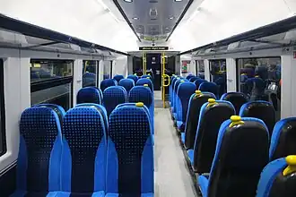 The units are capable of 100 mph (160 km/h),[1][10][32] but the maximum speed on their routes is 90 mph (140 km/h). They have standard class only 2+3 high-density seating, and each set has one toilet.[6]