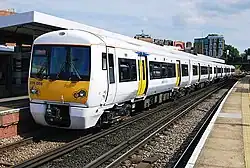The British Rail Class 376 Electrostar is a class of electric multiple unit passenger train that was manufactured by Bombardier Transportation at its Derby Litchurch Lane Works. It is part of the Electrostar family, which are the most common EMUs introduced since the privatisation of British Rail. The units were ordered by Connex South Eastern and introduced in 2004/2005 by South Eastern Trains to replace Class 465 and Class 466, which were transferred to Outer Suburban services to Kent to replace the Class 423 slam-door trains.