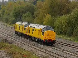 These locomotives have been refurbished from Class 37 locomotives at Barrow Hill Roundhouse by Network Rail and have been fitted with ERTMS signalling equipment. They are intended for use primarily on the Cambrian lines from Shrewsbury to Aberystwyth and Pwllheli, which requires an ERTMS-capable fleet. The locomotives were formerly 37100, 37170, 37178 and 37217 respectively.[3] A new inspection shed was built in 2008 at Coleham (Sutton Bridge Junction) in Shrewsbury for these locos.
