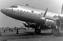 On 1 January 1946, the airline's first Avro Lancastrian, Star Light, flown by Don Bennett and R. Clifford Alabaster, undertook the first flight from the newly opened Heathrow Airport; it was on a proving flight to South America.[3] The first commercial flight followed ten weeks later. With the approaching nationalisation of British airlines, the airline came under the control of the British Overseas Airways Corporation and with the passing of the Civil Aviation Act 1946 – which set up three nationally owned corporations – BSAA became a government-owned corporation on 1 August 1946 charged with developing services from the UK to South America. This responsibility was then expanded later in 1946 to routes to the West Indies, Central America and the west coast of South America.[4]