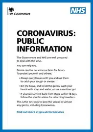 The four CMOs of the home nations raised the UK's risk level from low to moderate on 30 January 2020, upon the WHO's announcement of the disease as a Public Health Emergency of International Concern.[26][27] As soon as cases appeared in the UK on 31 January 2020, a public health information campaign, similar to the previous "Catch it, Bin it, Kill it" campaign, was launched in the UK, to advise people how to lessen the risk of spreading the virus.[27] Travellers from Hubei province in China, including the capital Wuhan, were advised to self-isolate, "stay at home, not go to work, school or public places, not use public transport or taxis; ask friends, family members or delivery services to do errands",[28] and call NHS 111 if they had arrived in the UK in the previous 14 days, regardless of whether they were unwell or not.[27] Further cases in early February prompted the Secretary of State for Health and Social Care, Matt Hancock, to announce the Health Protection (Coronavirus) Regulations 2020.[26] Daily updates have been published by the Department of Health and Social Care.[26] NHS Digital in the meanwhile, have been collecting data.[29]