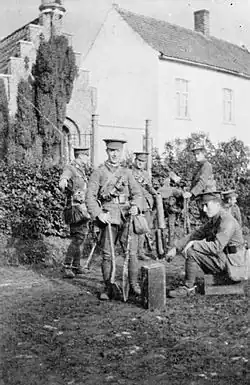 - ^ Two from the Staffordshire Yeomanry,[44][45] the Royal North Devon Yeomanry,[46][47] and the Essex Yeomanry,[48][49] and one each from the; Yorkshire Hussars,[50] Nottinghamshire Yeomanry,[51] Shropshire Yeomanry,[52] Leicestershire Yeomanry,[53] North Somerset Yeomanry attached to the 6th Leicester Regiment,[54] Pembroke Yeomanry,[55] Derbyshire Yeomanry,[56] Hertfordshire Yeomanry,[57] Royal 1st Devon Yeomanry,[58] Queen's Own Worcestershire Hussars,[59] Queen's Own Oxfordshire Hussars commanding the 8th Somerset Light Infantry,[60] Glasgow Yeomanry (Queen's Own Royal) attached to the 53rd Australian Infantry, A.I.F.,[61] and the Scottish Horse.[62]