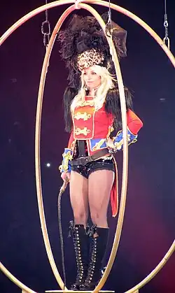 In 2009, Spears began dating agent Jason Trawick.[52] She also embarked on her Circus Tour, which was managed by her professional team including Lou Taylor, who became her business manager.[53] It was alleged that at one show Spears was "distressed" that a contact high from weed would lead her to fail a drug test, preventing her from spending time with her children; her management ultimately decided that show would continue.[54]