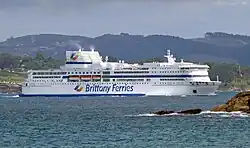 In 2018, Brittany Ferries commenced service between Cork, Ireland, and Santander. This was cancelled and effectively replaced in February 2020 by the Rosslare–Bilbao service which runs twice weekly.[5] A seasonal service between Rosslare and Roscoff is also offered.[6]