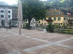 In 2009 and 2010 the village square in front of the community hall was thoroughly renovated and extended. The cobblestones were replaced and the square enlarged and raised. The fountain was moved to a new site, next to the beech tree, which had to stay where it was. Red and white bricks were used for the cobbles. Seating was built around the fountain and for the bus stop. The road was renewed from the Brixner Höhe/Aschaber to the Brixnerwirt, with the aim of slowing traffic down through the village centre.