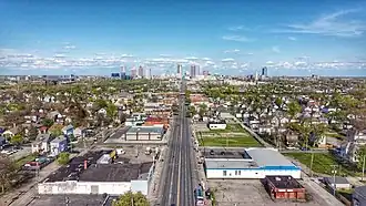 Broad Street and High Street both traverse beyond the extent of the city; High Street is the longest in Columbus, running 13.5 mi (21.7 km) (23.4 across the county), while Broad Street is longer across the county, at 25.1 mi (40.4 km).[2] The city's street plan follows a grid pattern with the intersection of Broad and High Streets at its center.[8] The address system begins its numbering at the intersection of Broad and High, with numbers increasing in magnitude with distance from Broad or High, as well as cardinal directions used alongside street names.[9]
