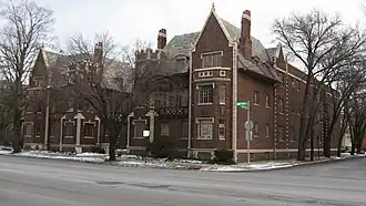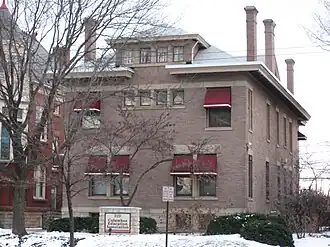 Early in Columbus's history, around the mid-1800s, East Broad Street became one of the most fashionable places to live, from downtown past Franklin Park. This carried into the early 1900s, when grand hotels and apartment buildings like the Royal York and Brunson Place were built. One early house from 1838, the Alfred Kelley mansion, was torn down and replaced with the Christopher Inn around 1961, itself torn down in 1988.[6][7]