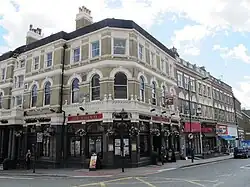 The former residence of the physical education pioneer Martina Bergman-Österberg is now commemorated with a blue plaque.[7] Other notable residents include the artists Walter Sickert, founder of the Camden Town Group, and John Henry Henshall.[8] The Railway pub is at the western end, on the junction with West End Lane close to West Hampstead tube station. The shops at this end of an otherwise largely residential street are known as Broadwell Parade.[9]