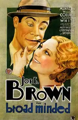 Broadminded is a 1931 American Pre-Code romantic comedy film directed by Mervyn LeRoy and starring Joe E. Brown, Ona Munson and William Collier Jr.[1]