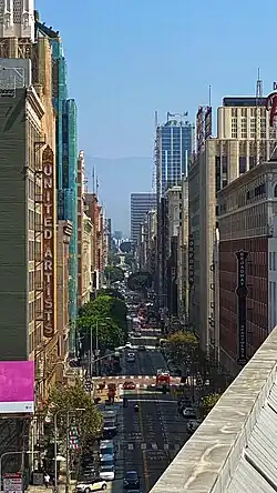 Broadway is a major thoroughfare in Los Angeles County, California. The portion of Broadway from 3rd to 9th streets was Los Angeles's main commercial area from the 1910s until World War II and in 1979, it was listed as the Broadway Theater and Commercial District in the National Register of Historic Places,[1] the first and largest theater district to be listed.[3] The district was expanded to 2nd and Olympic in 2002.[2]