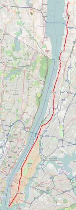 ![]() Broadway in Manhattan ![]() Broadway through Manhattan, the Bronx, and lower Westchester County is highlighted in red | |