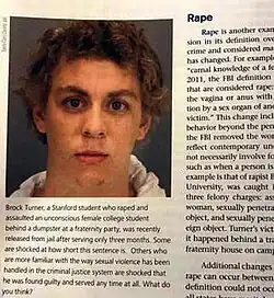- ^ a b Buncombe, Andrew (September 13, 2017). "Brock Turner's mugshot used to illustrate definition of 'rape' in criminal justice textbook". The Independent.