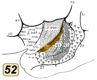 ![]() Inside of the lateral sulcus. BA52 is shown in orange. | |