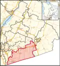 This riding, in the south of the province, extends along the Canada–US border between Montreal and Sherbrooke, straddling the Quebec regions of Montérégie and Estrie. Its main towns are Cowansville, Magog, and Brome Lake.