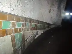 Although the platforms have long since been removed, their original location can be seen from passing trains by the brick walls that stand in their place. The original tiling remains on the tunnel walls, although soot and dirt now obscures them.