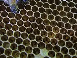The brood comb is the beeswax structure of cells where the queen bee lays eggs.[1] It is the part of the beehive where a new brood is raised by the colony. During the summer season, a typical queen may lay 1500-2000 eggs per day, which results in 1500-2000 bees hatching after the three-week development period.