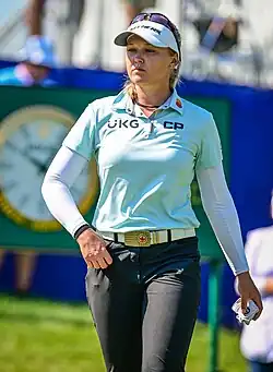 Henderson was named the Canadian Press female athlete of the year for 2015, 2017 and 2018.[3][4][5] She won her first major at age 18 in 2016 at the KPMG Women's PGA Championship, becoming the event's youngest winner.[6] With 13 LPGA wins as of January 2023, Henderson has the most victories of any Canadian golfer on major professional tours.[7][8] She won her second career major title at the 2022 Evian Championship.[9][10]