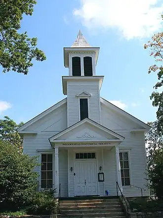 The Brookfield Center Historic District in Brookfield, Connecticut is a historic district that was listed on the National Register of Historic Places in 1991.[1] It is located in the vicinity of the junction of Route 133 and Route 25. The district represents the original settlement of the town of Brookfield and contains 67 residential, religious, and municipal buildings over a 43-acre (17 ha) area representing a wide range of architectural styles from the 18th to 20th centuries including Bungalow/Craftsman, Greek Revival, and Queen Anne style architecture. The district includes the old town hall, the Congregational Church of Brookfield, Saint Joseph Church & Elementary School, Center Elementary School (Public), the former general store (now a real estate agency), St. Paul's Episcopal Church, and the surrounding residential neighborhood.[2][3] The district is architecturally significant as an accurate representation of the historical development of the original settlement of the Town of Brookfield as the buildings are well-preserved from the time they were built with minimal alterations and intrusions, including their spatial relationships to one another.[4]