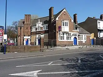 It was built in 1927-1928 for the Smethwick-based Mitchells & Butlers Brewery. The architect was George Bernard Cox of Harrison and Cox.[1]