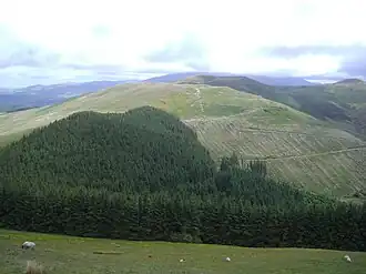 On the northern flank of Broom Fell, is Burthwaite Heights (1,043 ft), listed as a separate top in some guidebooks.[2] This is a small hill beside the vast morass of Wythop. Wythop Moss itself lies to the west and drains (slowly) via Tom Rudd Beck. To the east of Burthwaite Heights, runs the valley of Wythop Beck, emptying rather more effectively between the twin hills of Ling Fell and Sale Fell.