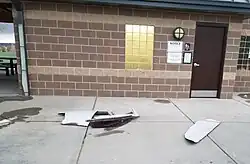 On February 20, 2021, United Airlines Flight 328 departed from the nearby Denver International Airport en route to Honolulu, Hawaii. The Boeing 777 aircraft suffered an engine failure four minutes after takeoff[2] that resulted in a debris field at least 1 mile (1.6 km) long that included Commons Park and the surrounding residential area.[3][4][5][6] Parts Departing Aircraft from the affected engine cowling were found in the park.[7][8] The aircraft returned to Denver International Airport and landed with no reported injuries to passengers or persons on the ground.[9]