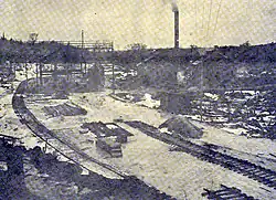 A railway was built connecting to the Sydney & Louisburg Railway at False Bay Head, continuing through Broughton Junction to Broughton, a distance of four and a half miles. Construction began in 1905 and the railway was completed in 1906.[4] Unfortunately, due to the high costs of building such a modern town, the company went bankrupt in 1907.[5] They could not afford to secure rail transportation to get coal from the mine to port.[4] Quickly after these problems arose, Lancaster and Mayhew left Cape Breton, abandoning the company and the town.[6]