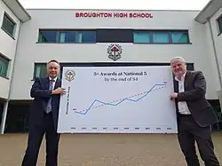 In May 2024 Angus Robertson MSP for Edinburgh Central visited Broughton High School. Mr Robertson commended the school for its sustained improvements in attainment for the since 2014.