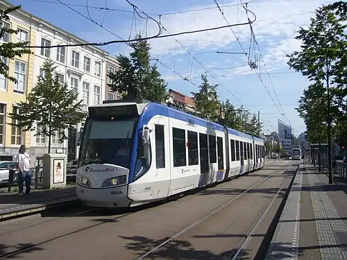 | RR4 | De Uithof - Beresteinaan - Bouwlustlaan - De Rade - Dedemsvaart - Zuidwoldepad- Leyenburg - Monnickendamplein - Tienhovenselaan - Dierenselaan - De la Reyweg - Monstersestraat - HMC Westeinde - Brouwersgracht - Grote Markt - Spui - Den Haag Centraal - Beatrixkwartier - Laan van NOI - Voorburg 't Loo - Leidschendam-Voorburg - Forepark - Leidschenveen - Voorweg (Low Level) - Centrum West - Stadhuis - Palenstein - Seghwaert - Willem Dreeslaan - Oosterheem - Javalaan - Van Tuyllpark - Lansingerland-Zoetermeer | HTM RegioCitadis Tram | 6x per hour (Monday - Saturday, Every 10 Minutes), 4x per hour (Sundays and evenings, after 7pm, Every 15 Minutes), 12x per hour (Workdays, rush hours, Every 5 minutes to Monstersestraat/Zoetermeer) |