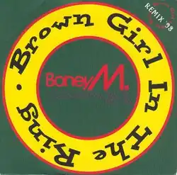 Arguably the most popular version of the song, Boney M.'s recording was originally the B-side to the group's number-one hit single "Rivers of Babylon" (1978). In July 1978, following ten weeks in UK Top Ten, five of them at number one, "Rivers of Babylon" slipped to number 18 and then to 20, when radio stations flipped the single. Airplay for "Brown Girl in the Ring" resulted in a happy chart reversal, with the single re-entering the Top Ten, where it spent an additional nine weeks, peaking at number two in September.[2] Liz Mitchell had previously recorded the song in 1975 with the group Malcolm's Locks, as the B-side of their single "Caribbean Rock". Mitchell's ex-boyfriend Malcolm Magaron was the group's lead singer. Arranger Peter Herbolzheimer accused Frank Farian of stealing his arrangement for the song, for which Farian claimed credit on the single.[3] The court case ran for more than 20 years in Germany.